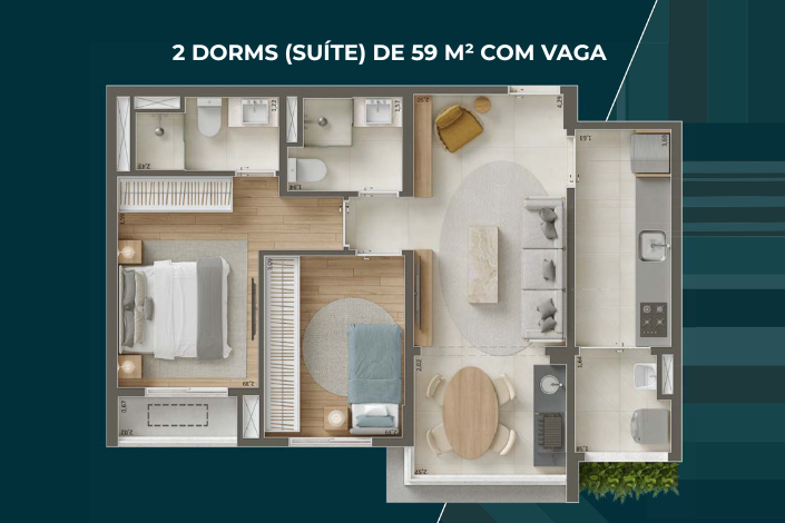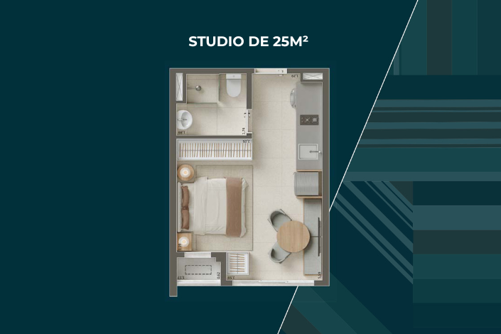 Variedade de Plantas: De Studios de 25m² a apartamentos de 3 dormitórios com suíte (75m²).